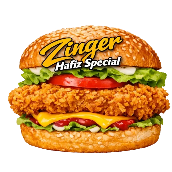 Hafiz Special Burger with Fries β Loaded with crispy chicken patty, juicy chapli patty, fresh veggies, and served with golden fries for the perfect combo meal. ππ