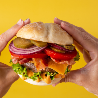Beef Burger with Fries β Tender beef patty topped with melty cheese, fresh veggies, and served with hot golden fries for the perfect meal. ππ§π